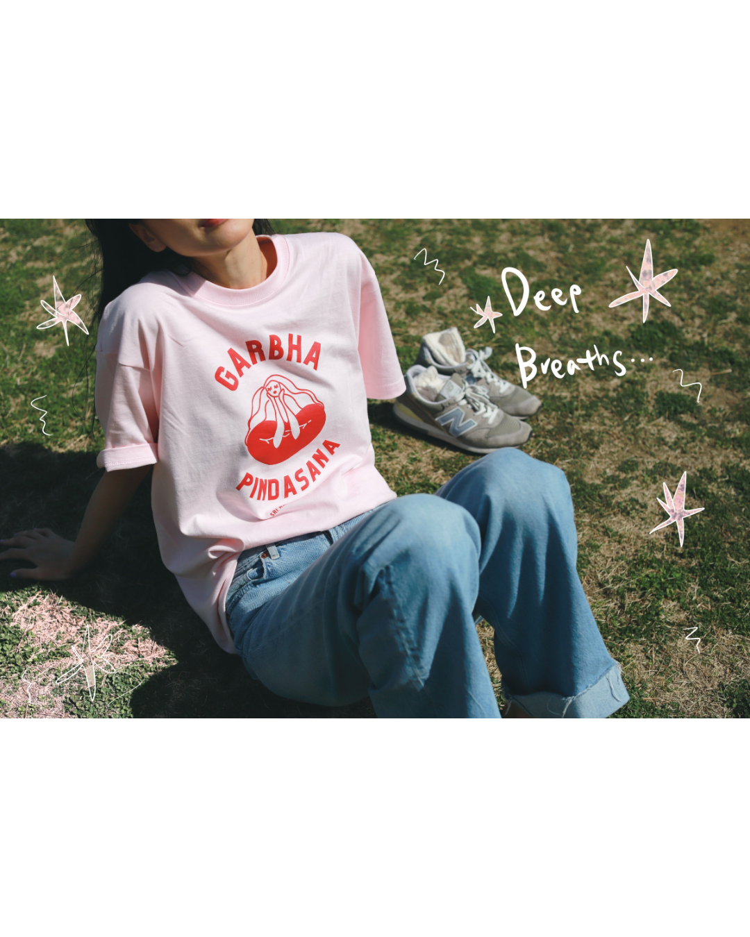 SRI.RAMANA.RITA.YOGUE GARBHA PINDASNA ガルバピンダーサナ Tシャツ(ライトグレー×ライトピンク)