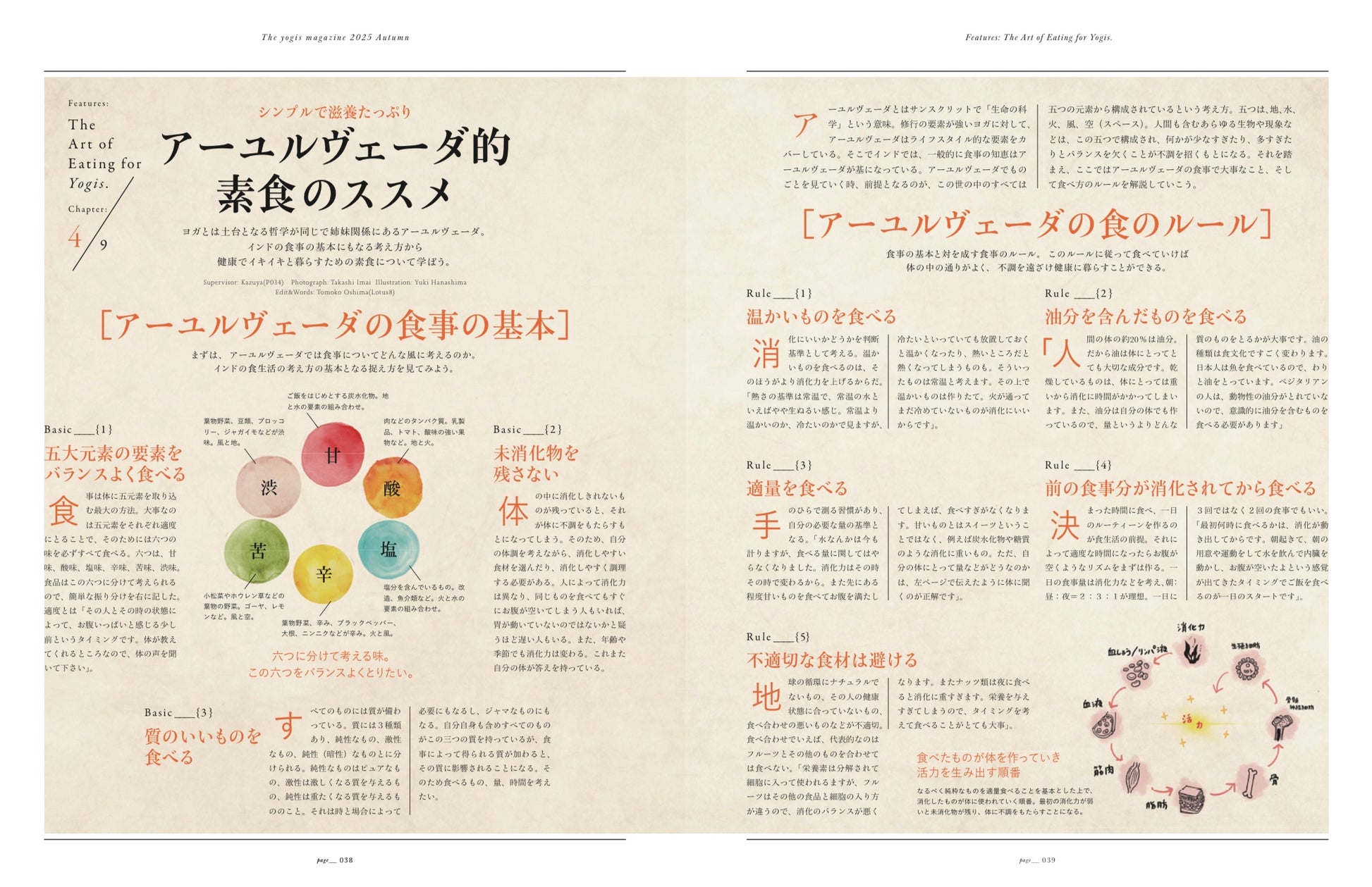 特集の最後の記事は世界的に活躍を続けるヨガマスターの食事考。